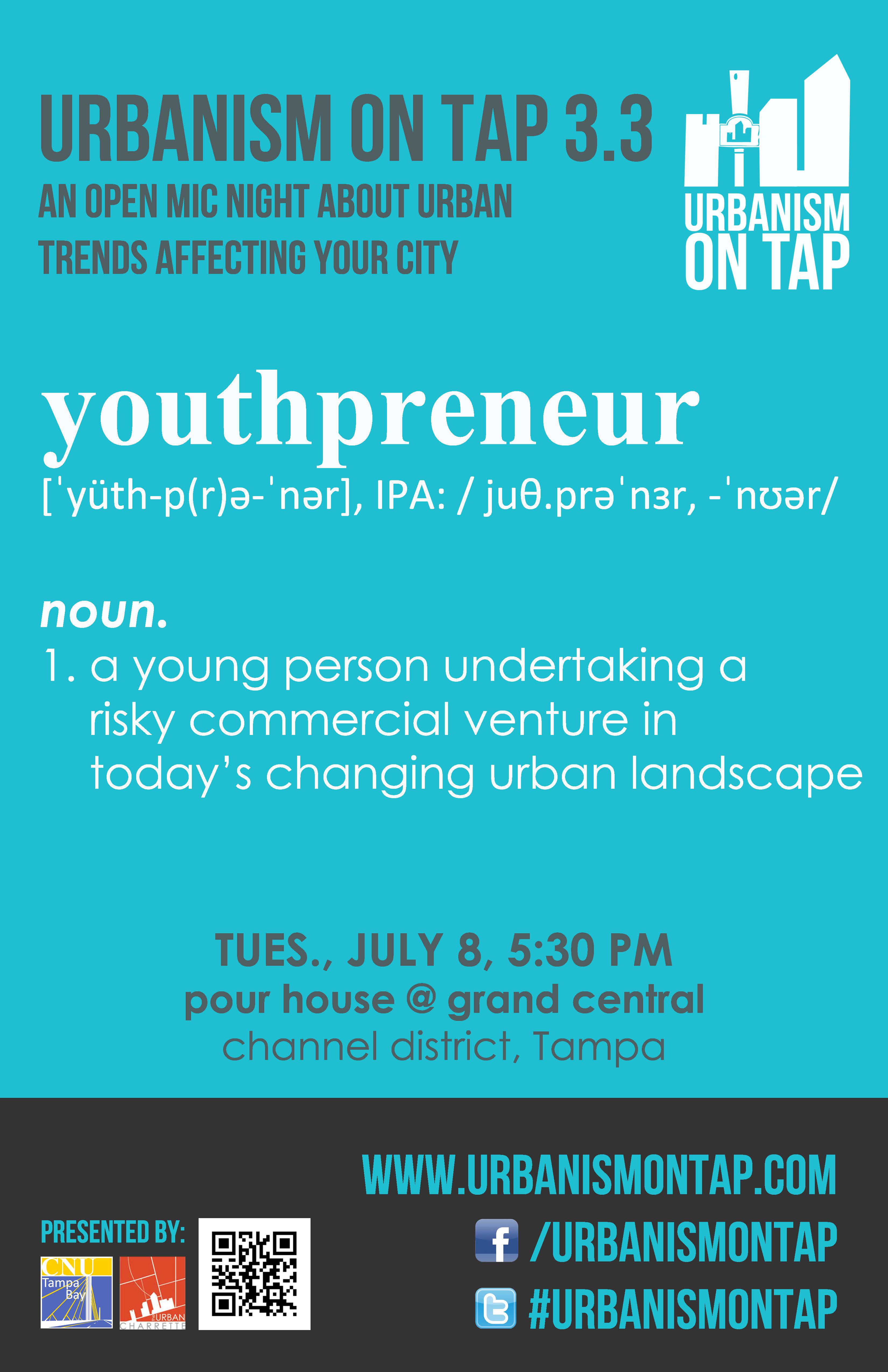 Hi Everyone,This a reminder that the next Urbanism on Tap, brought to you by CNU Tampa Bay and The Urban Charrette is coming up on Tuesday, July 8th from 5:30-7:00 PM at Pour House Channel District.
