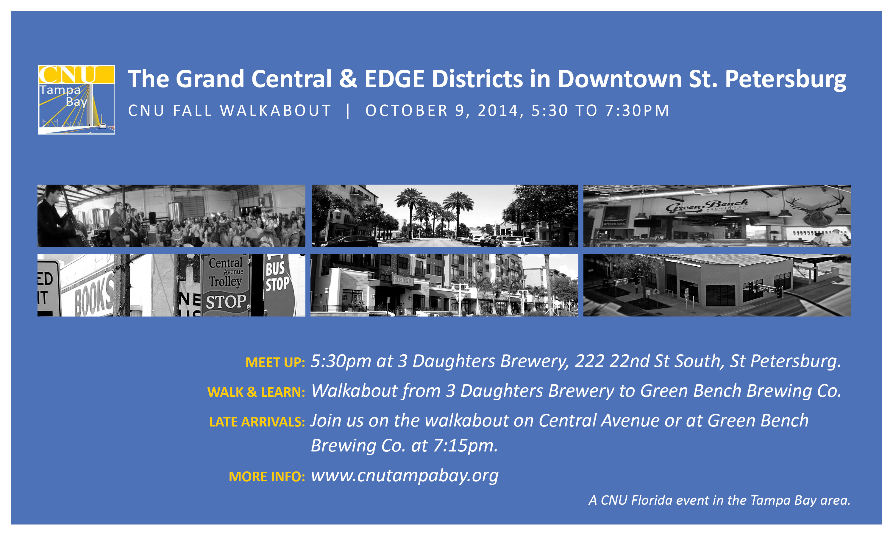 October 9, 2014 – Grand Central, St. Petersburg Walkabout. Time – 5:30pm to 7:15pm, Venue – Downtown St. Petersburg