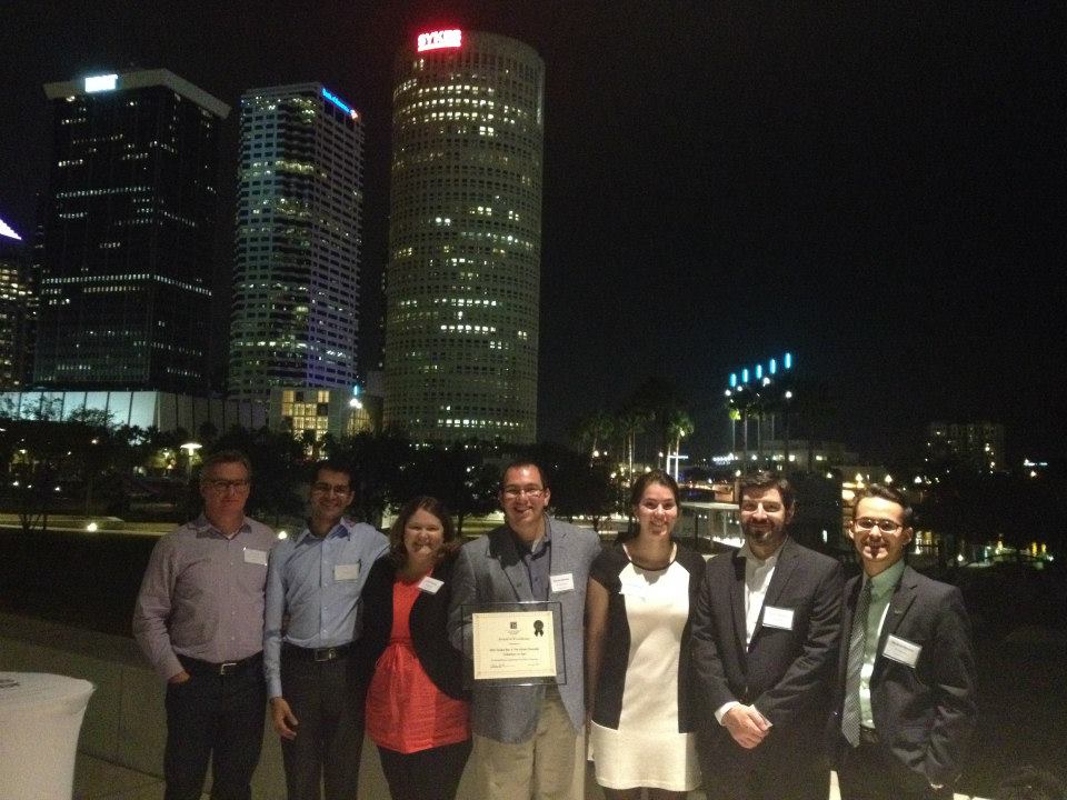 We are thrilled to announce that Urbanism on Tap has won the 2014 Award of Excellence from the Sun Coast Section of the Florida Chapter of the American Planning Association. This award recognizes an organization, initiative, urban planning process or project which is unique and revolutionary within the Tampa Bay Region. Urbanism on Tap was highlighted as an innovative concept that supports participatory planning principles and demonstrates excellence in the planning profession. If you haven’t yet experienced Urbanism on Tap – the program combines outreach, networking, and education into a unique series of events. Urbanism on Tap provides participants with an opportunity to engage in constructive informal conversations about current issues shaping the community. Events are held at neighborhood gathering places – not public institutions – usually a bar or pub that is family friendly. Both locals and professionals are welcome where a free exchange of knowledge and experiences is encouraged. The goal is to raise grassroots awareness and provide an opportunity for the average person to explore and engage with issues shaping their urban environment. CNU Tampa Bay members and representatives from the Urban Charrette jointly accepted the award at an awards reception on November 21 at the Tampa Museum of Art.