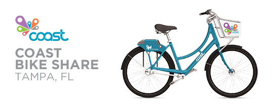 The ride starts promptly at 6:00PM at the Coast Bike Share Station in Curtis Hixon Park. If you plan to use a Coast bike, please make arrangements in advance. Visit Coast Bike Share to sign up and reserve your bike.